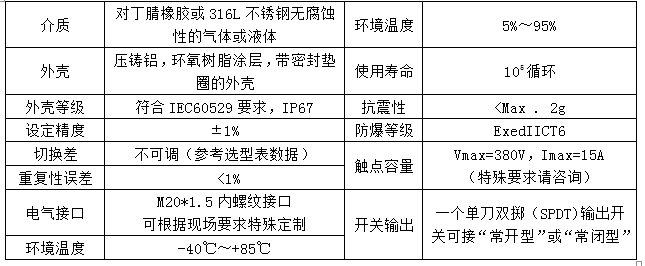 □SPDT或DPDT輸出;鑄鋁外殼,可選防爆;多種壓力及電氣接口可選;